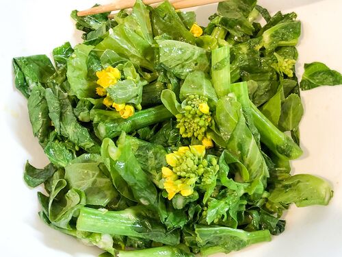 スパゲッティーのパンチョで白ナポ。そして、白菜の菜の花のおひたし。